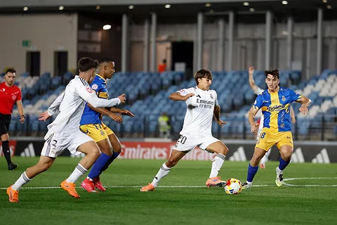 El delantero del Castilla deslumbra bajo la lluvia en el Alfredo Di Stéfano ante un Avilés que se encuentra en zona de pelea por el ascenso.